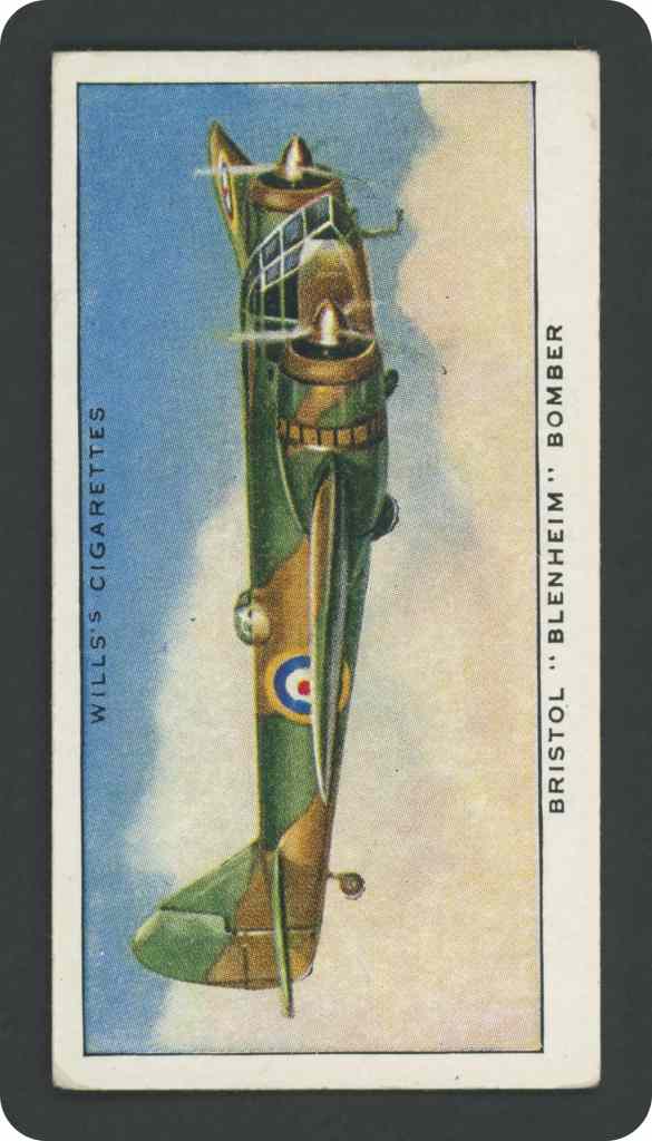 Produced in large quantities for the R.A.F., the Bristol “Blenheim’ is the World’s fastest bomber. With two 840h.p. “Mercury” VIII motors, the “Blenheim” has an official top-speed of 279 m.ph. at 15,000 ft. with full load. It can cruise for 1,000 miles at 220 m.p.h. with 4,621 lb. of fuel and bombs, and when lightly loaded is said to have done wellover 300 m.p.h. The “Blenheim” is an example of the modern trend towards mid-wing monoplanes for higher efficiency. It is of all-metal construction with a retractable undercarriage, split flaps and three-blade controllable-pitch airscrews. There is a crew of three, pilot, bomb-aimer and gunner. The maximum loaded weight is 12,030 lb. and the wing span 56 ft. 4 in. (By courtesy of “The Aeroplane”).