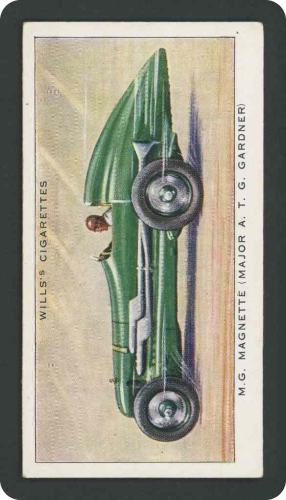 Major “Goldie” Gardner is one of the most popular and versatile of our racing drivers. In spite of the handicap of a leg injured as the result of a war wound, he has had a long and successful career in the world of speed. His crowning triumph was achieved on the Frankfurt Autobahn, where he drove the M.G. depicted. Here he succeeded in proving his car to be the fastest light car in the World by achieving a speed of 148•8 m.p.h. Driving the same car, a 1,100 c.c. model, Major Gardner captured a number of International Class G records up to 50 miles, a number of which were established at Montlhèry. His car also holds the outer circuit lap record at Brook-lands for Class G cars.