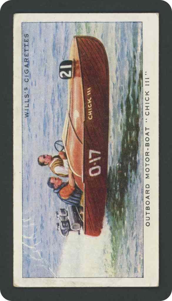 The idea that the excitement of high speed on the water is attainable only at great expense is quite wrong. Outboard motor- boats can give as many thrills as any other type, in fact, more than most on account of their small size and very lively motion. Chick IlI is 12 ft. 6 in. long by 4 ft. 8 in. beam, built of silver spruce and weighing 180 lb. without its motor; the latter is a 2- cylinder Johnson outboard, developing 22 h.p. at 4,500 revolutions per minute. 36 m.ph. is remarkable for such a tiny craft, and with Mr. H. C. Notley handling her, many records and trophies stand to her credit. Yet she is reasonably-priced (£140) and “all out” uses only 4 gallons of petrol per hour.