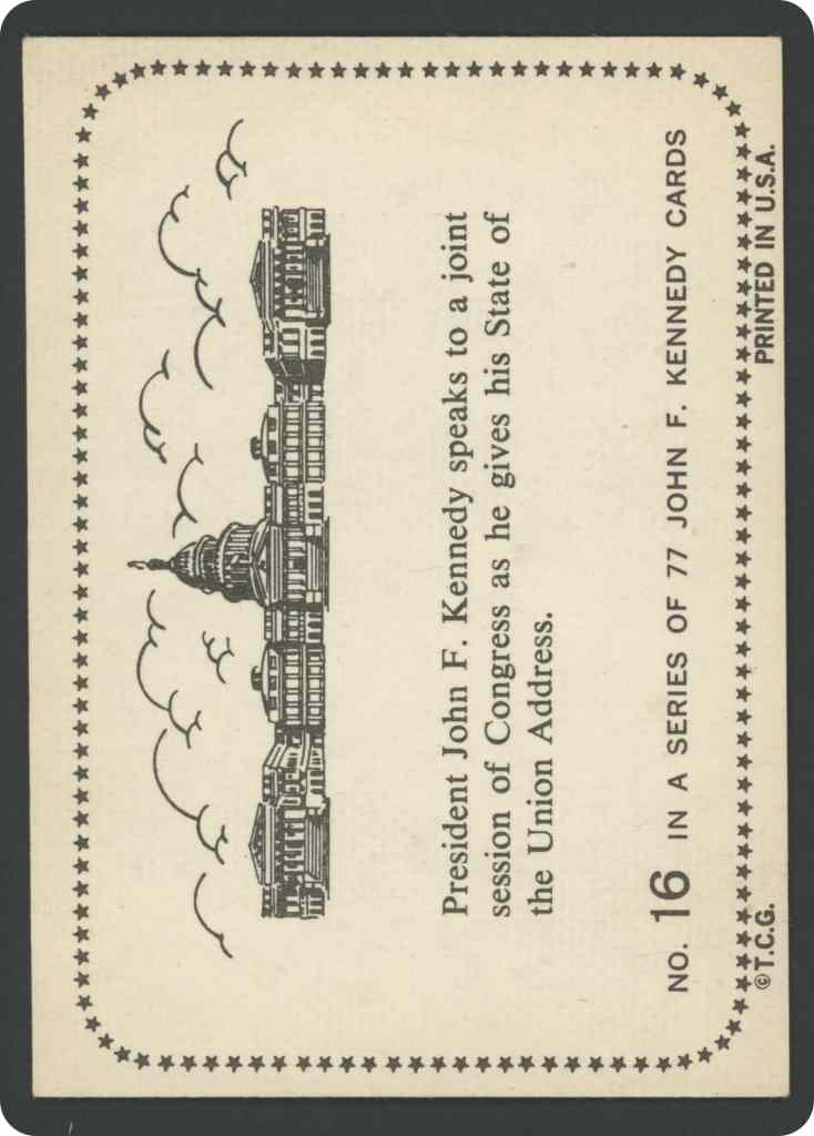 President John F. Kennedy speaks to a joint session of Congress as he gives his State of the Union Address.