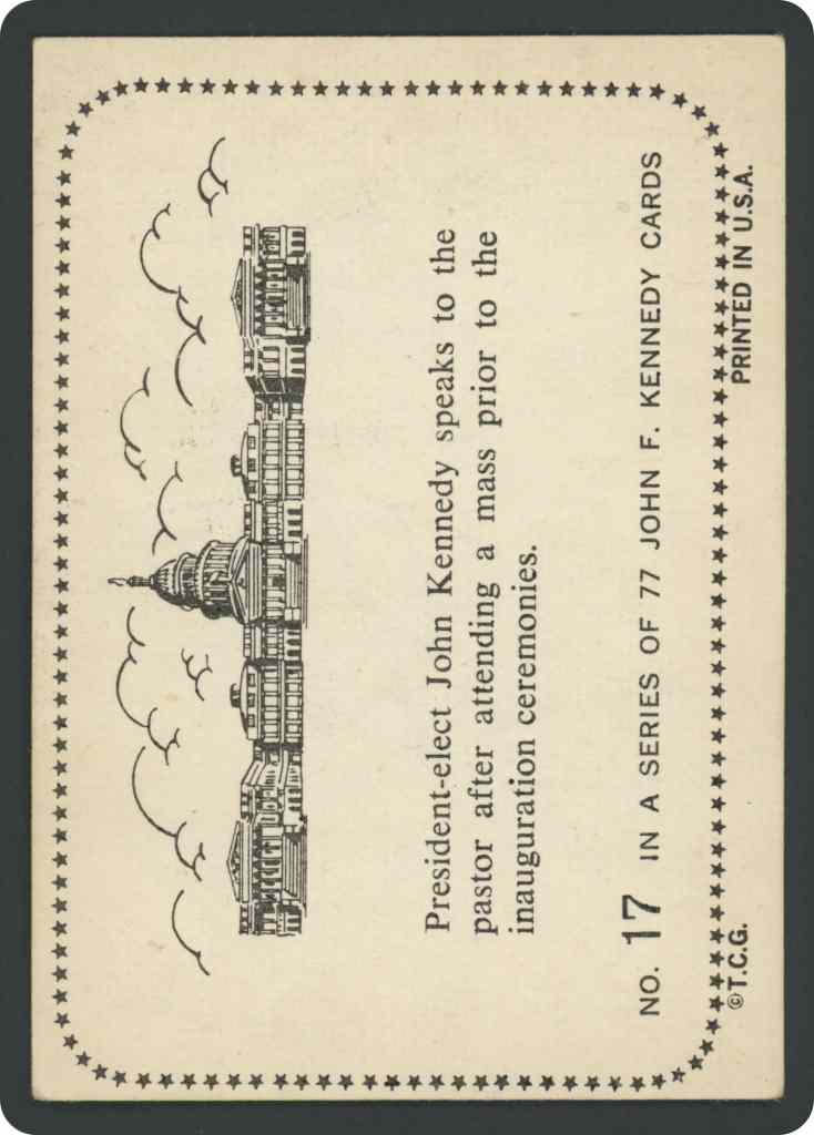 President-elect John Kennedy speaks to the pastor after attending a mass prior to the inauguraton ceremonies.