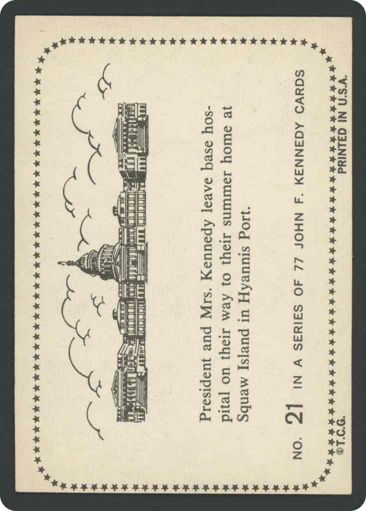 President and Mrs. Kennedy leave base hospital on their way to their summer home at Squaw Island in Hyannis Port.