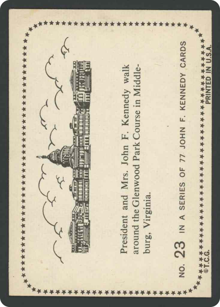 President and Mrs. John F. Kennedy walk around the Glenwood Park Course in Middleburg, Virginia.