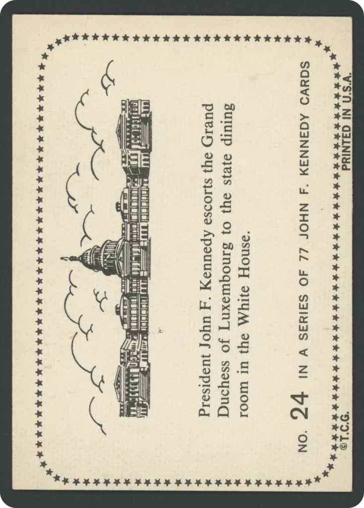 President John F. Kennedy escorts the Grand. Duchess of Luxembourg to the state dining room in the White House.