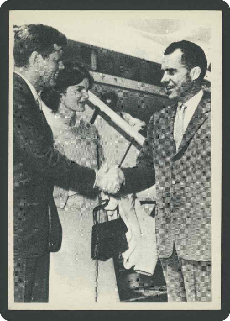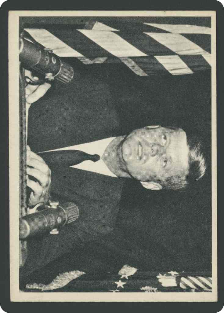 While some may colloquially refer to this set as being “rushed out the door” by Topps, it is held in high esteem by collectors as a unique snapshot of USA’s political history. Despite its initial swift sales, the cards were not widely considered collectible at the time. Today, although these cards are not classified as rare, finding them in mint condition and unslabbed has become increasingly challenging. The cardboard stock used in this set quickly succumbed to discoloration and wear and tear, contributing to their dwindling availability in top-notch condition.