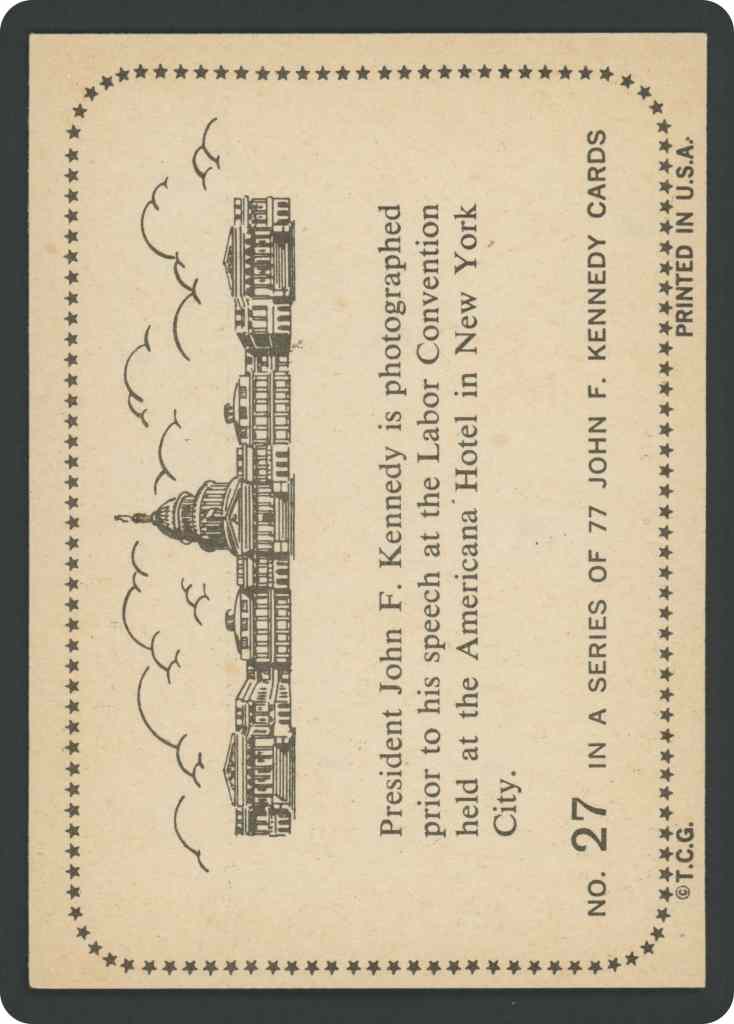 President John F. Kennedy is photographed prior to his speech at the Labor Convention held at the Americana Hotel in New York City.
