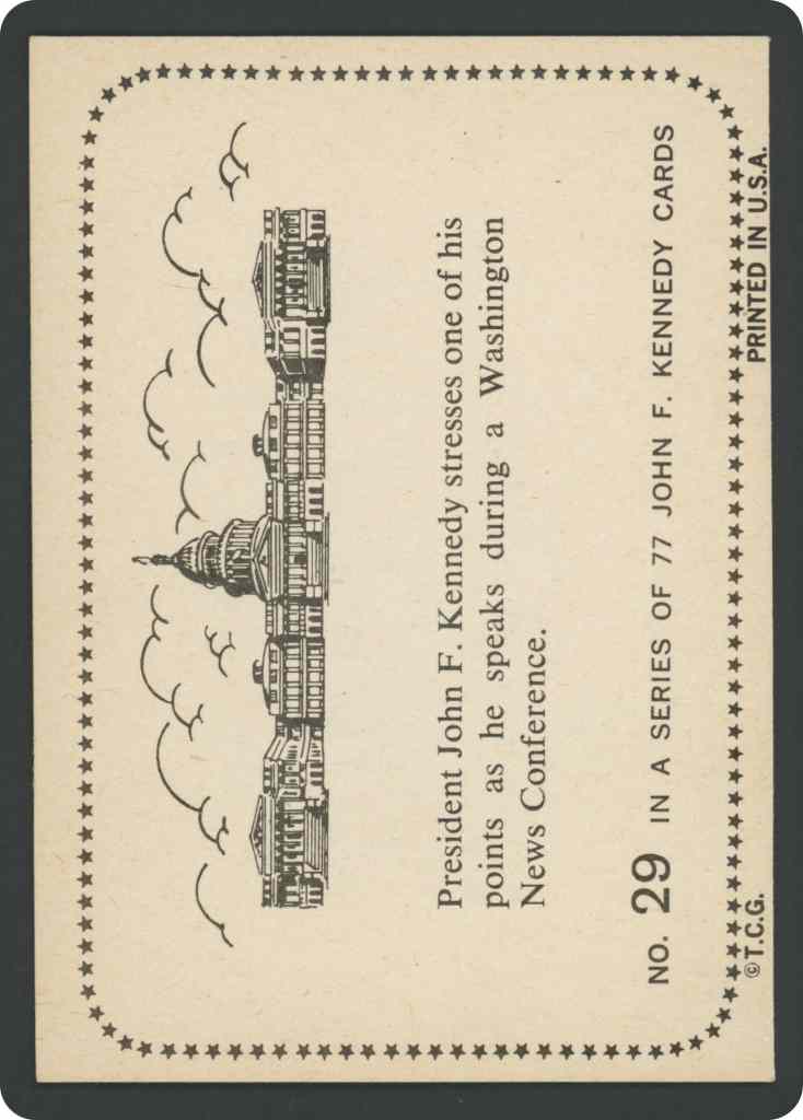 High quality card sets in “Near Mint” condition can command prices starting from $800 and can go even higher, while a set in “Good” condition typically sells for around $100. It is worth noting that Rosan card company also introduced a JFK card set just before Topps released their own set. These cards feature very similar black and white images, along with short black and white descriptions on the back, printed on white or unfinished card stock. Although these sets are currently selling at a much lower value, the Rosan card set has shown an increase in value over the years, possibly due to a decrease in supply.