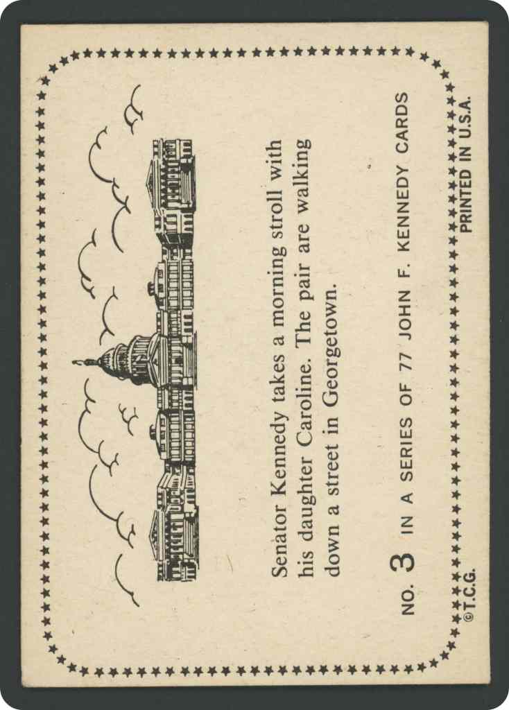 Senator Kennedy takes a morning stroll with his daughter Caroline. The pair are walking down a street in Georgetown.