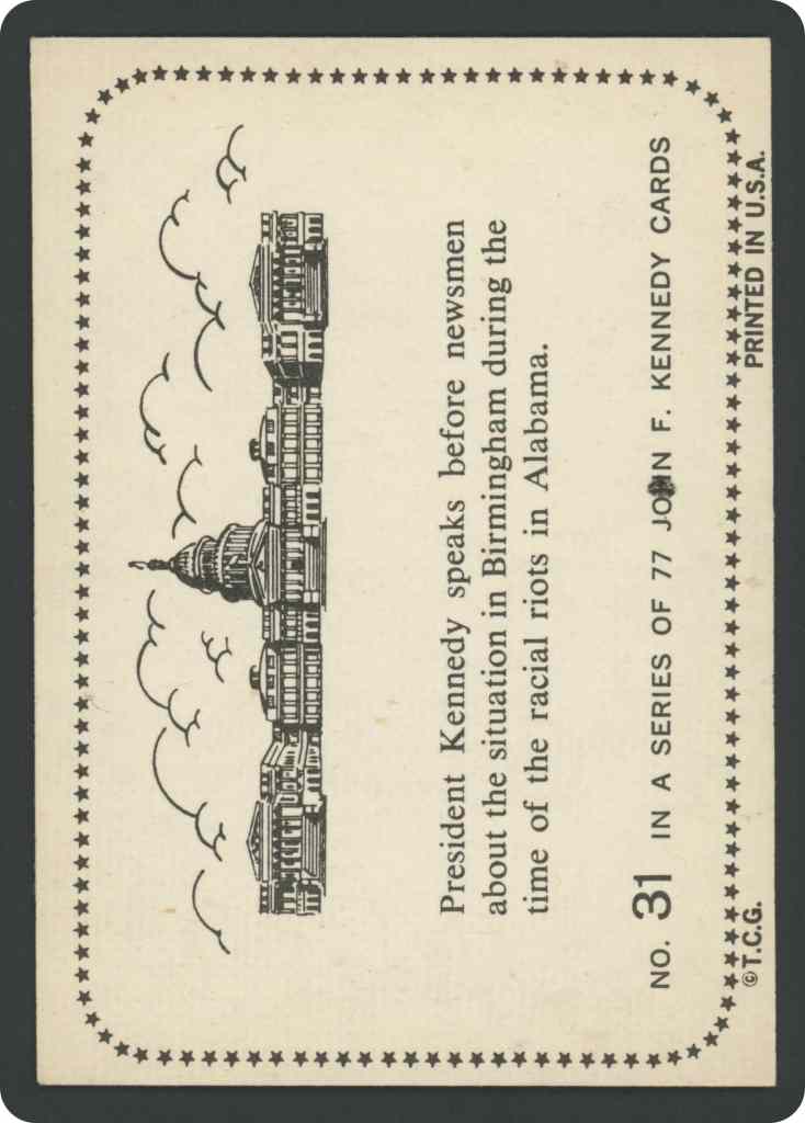 President Kennedy speaks before newsmen about the situation in Birmingham during the time of the racial riots in AlAbama.