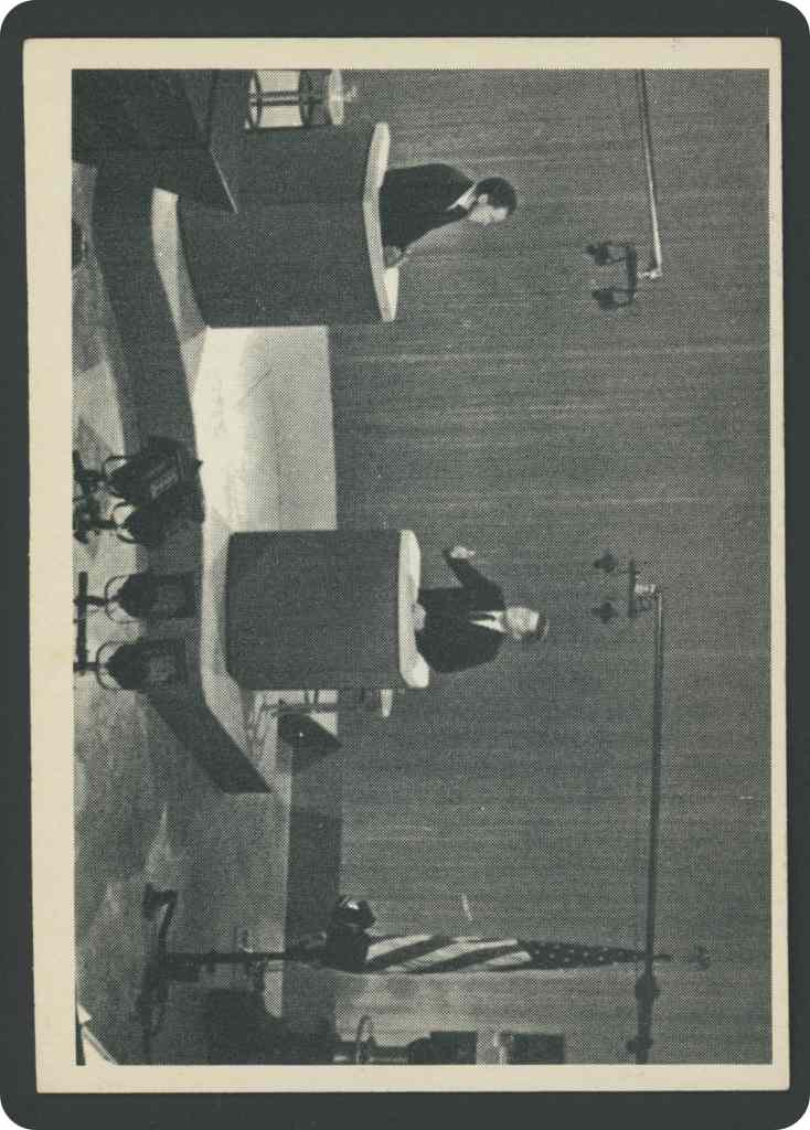 Presidential candidates Richard Nixon and John Kennedy debate before a vast television audience in 1960