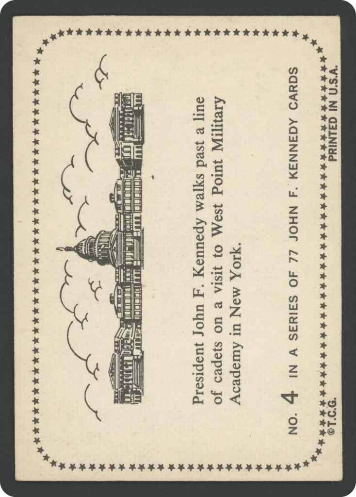President John F. Kennedy walks past a line of cadets on a visit to West Point Military Academy in New York.