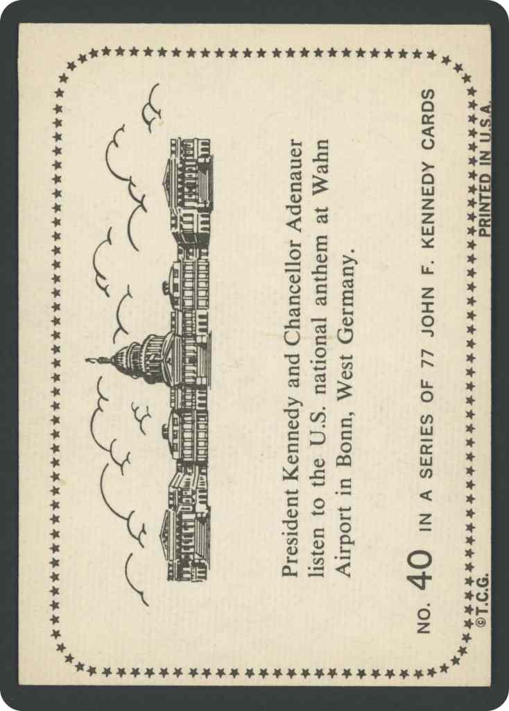 President Kennedy and Chancellor Adenauer listen to the U.S. national anthem at Wahn Airport in Bonn, West Germany.