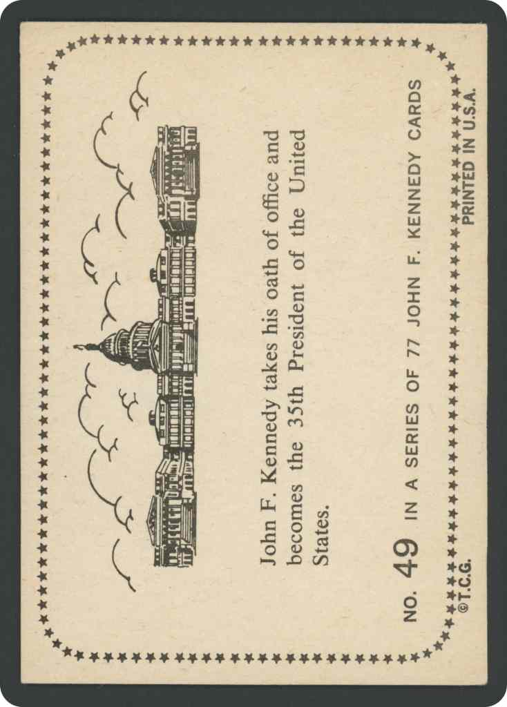 John F. Kennedy takes his oath of office and becomes the 35th President of the United States.