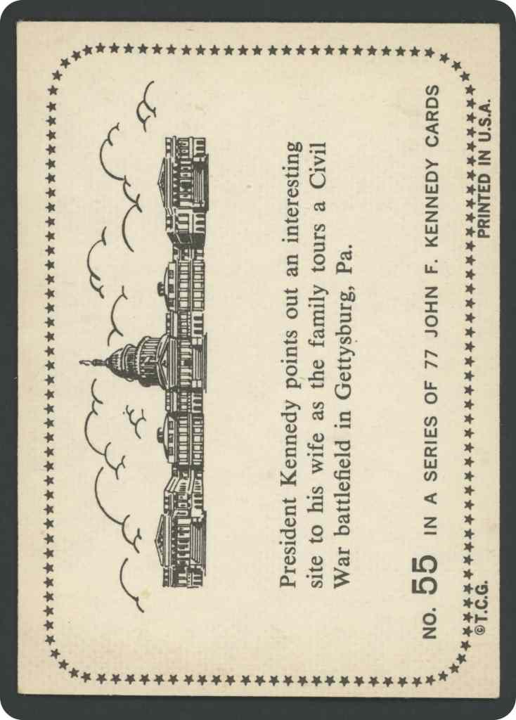 President Kennedy points out an interesting site to his wife as the family tours a Civil War battlefield in Gettysburg, Pa.