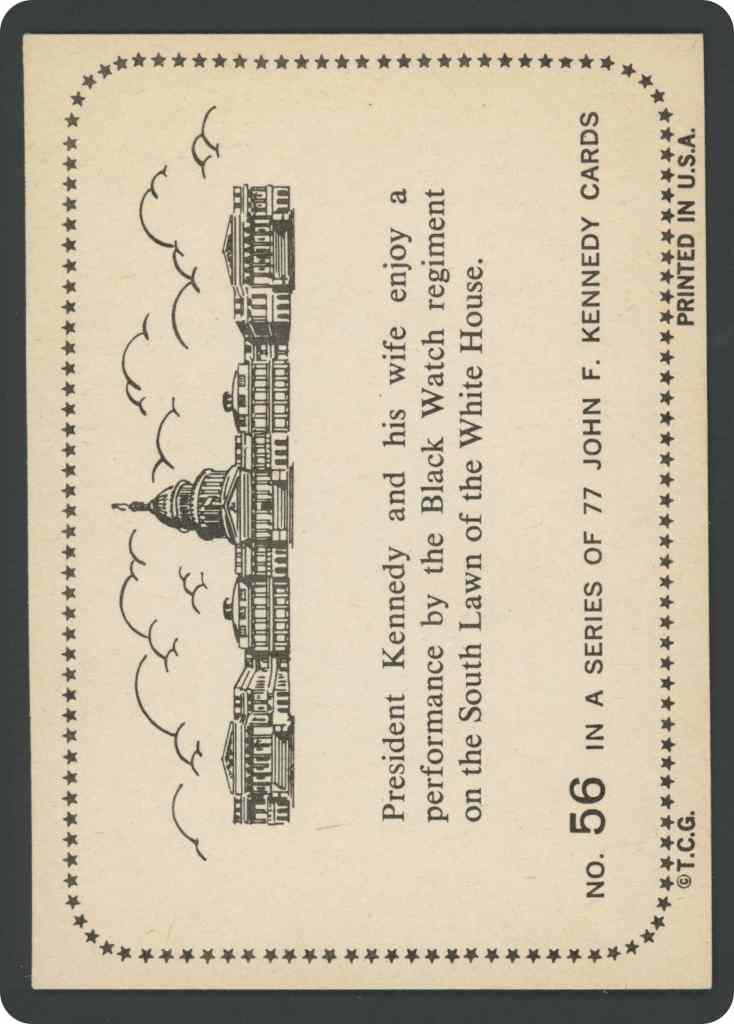 President Kennedy and his wife enjoy a performance by the Black Watch regiment on the South Lawn of the White House.