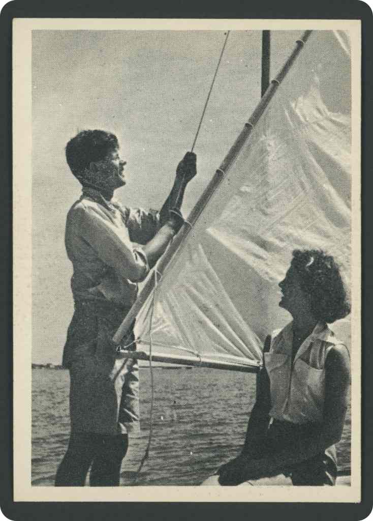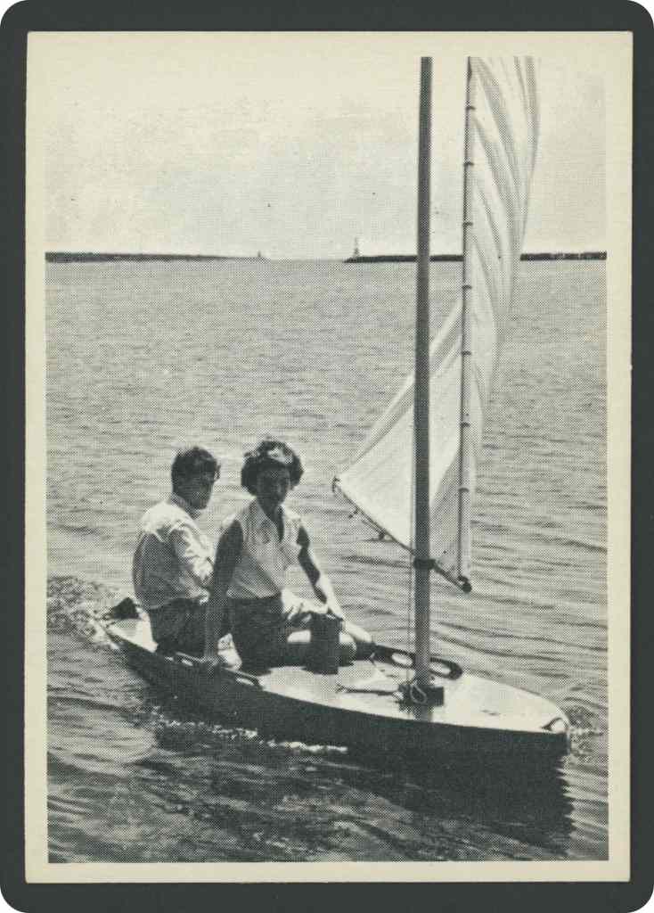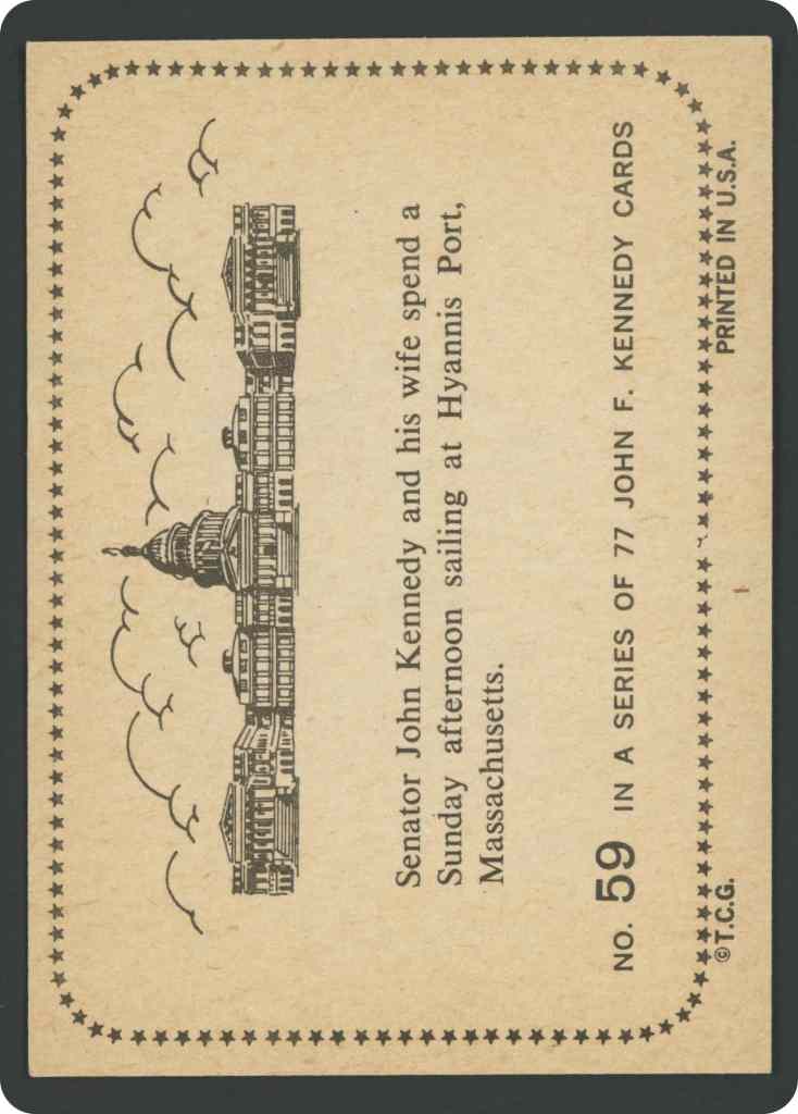 Senator John Kennedy and his wife spend a Sunday afternoon sailing at Hyannis Port, Massachusetts.