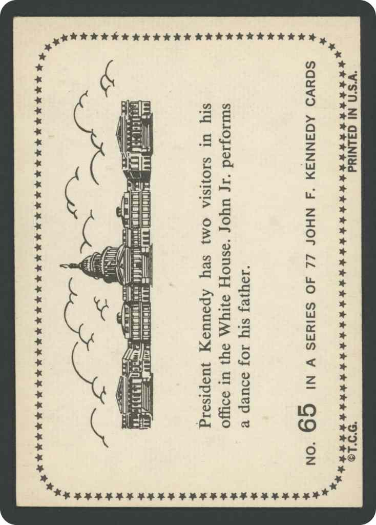 President Kennedy has two visitors in his office in the White House. John Jr. performs a dance for his father.