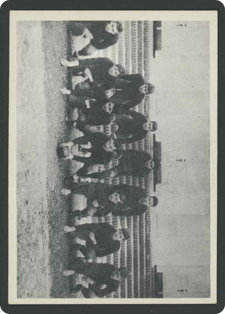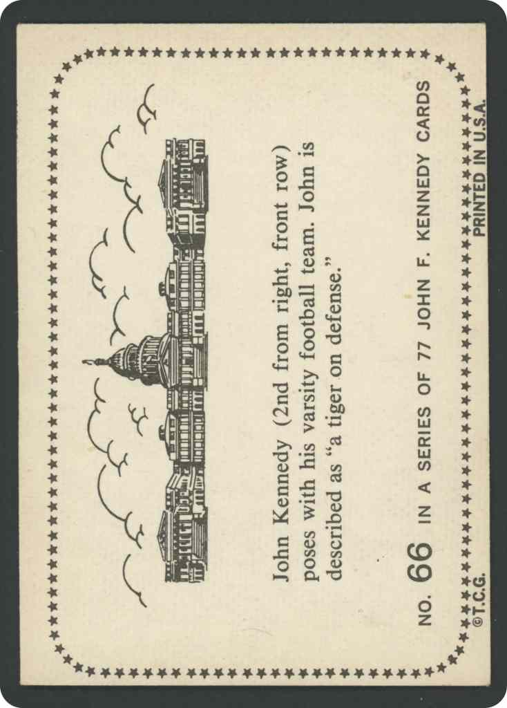 John Kennedy (2nd from right, front row) poses with his varsity football team. John is described as “a tiger on defense”.