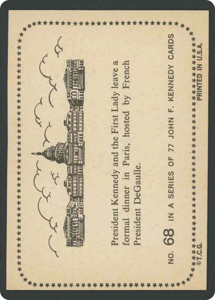 President Kennedy and the First Lady leave a formal dinner in Paris, hosted by French President DeGaulle.