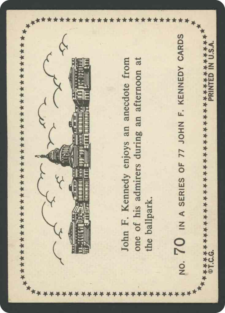 John F. Kennedy enjoys an anecdote from one or his admirers during an atternoon at the ballpark.