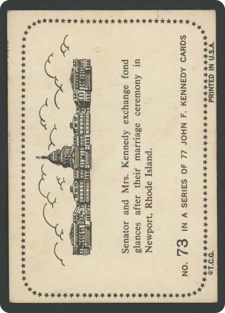 Senator and Mrs. Kennedy exchange fond glances after their marriage ceremony in Newport, Rhode Island.