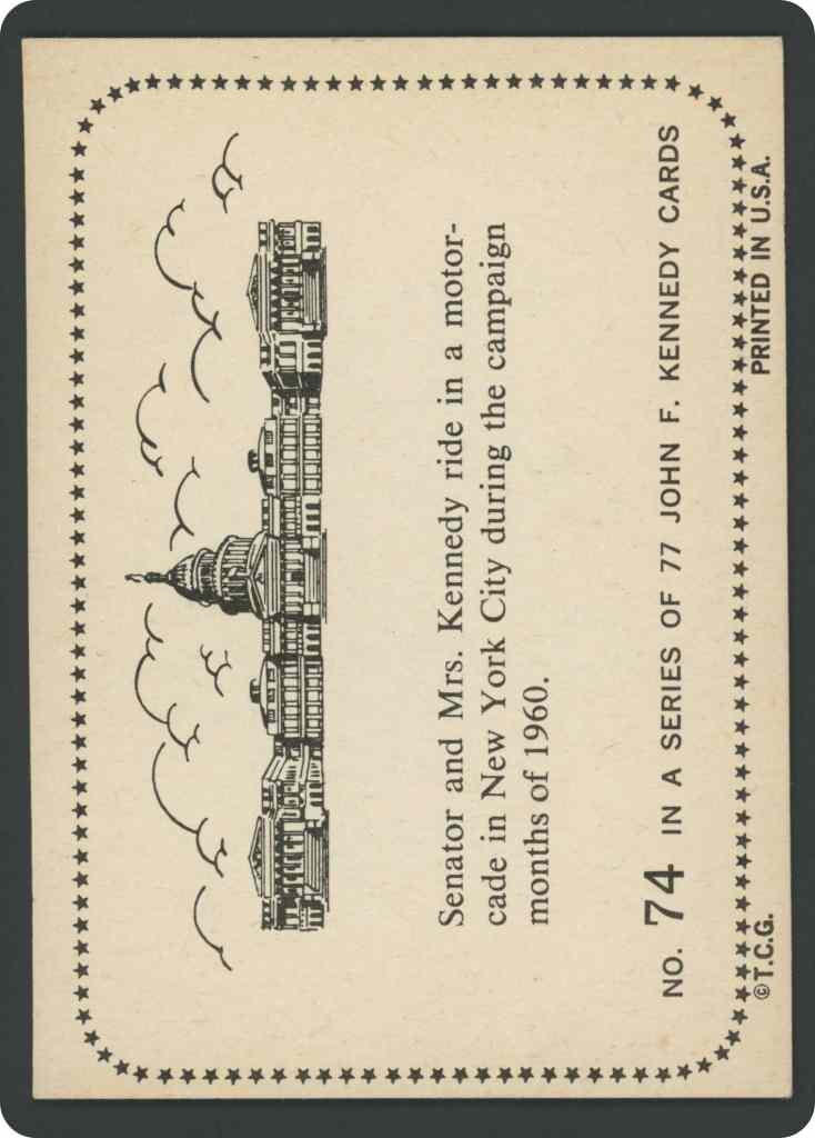 Senator and Mrs. Kennedy ride in a motorcade in New York City during the campaign months of 1960.
