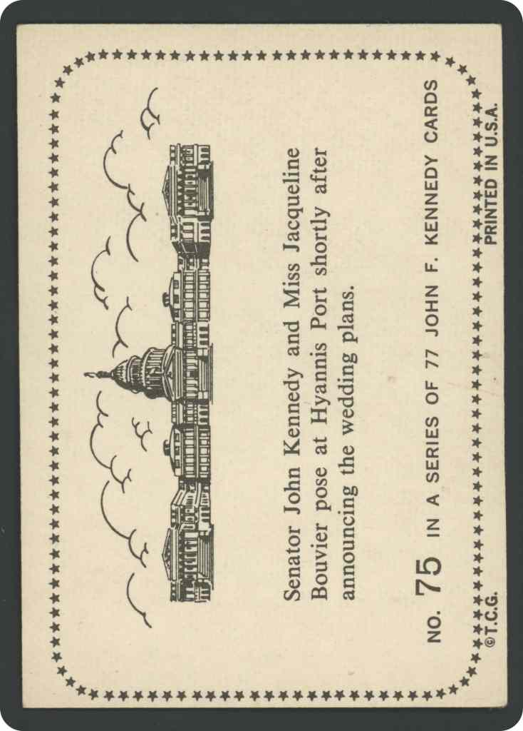Senator John Kennedy and Miss Jacqueline Bouvier pose at Hyannis Port shortly after announcing the wedding plans.