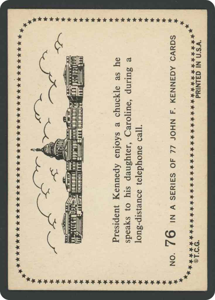 President Kennedy enjoys a chuckle as he speaks to his daughter, Caroline, during a long-distance telephone call.