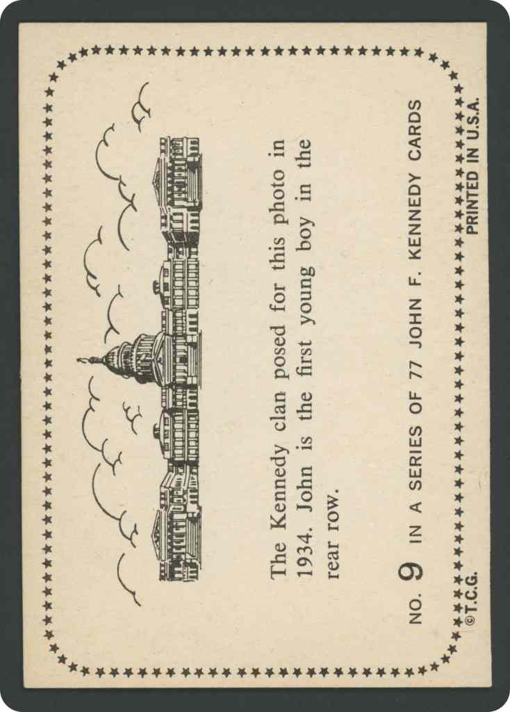 The Kennedy clan posed for this photo in 1934 John is the first young boy in the reate row.