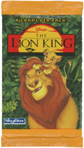 Lets Open another 90’s pack of cards. Today’s pack is 1994 SkyBox Lion King. a classic Disney production that was a blockbuster in my childhood days. Everything was Lion King for a long time after the movie release. These cards were part of the marketing push to create buzz and excitement to further the films longevity.